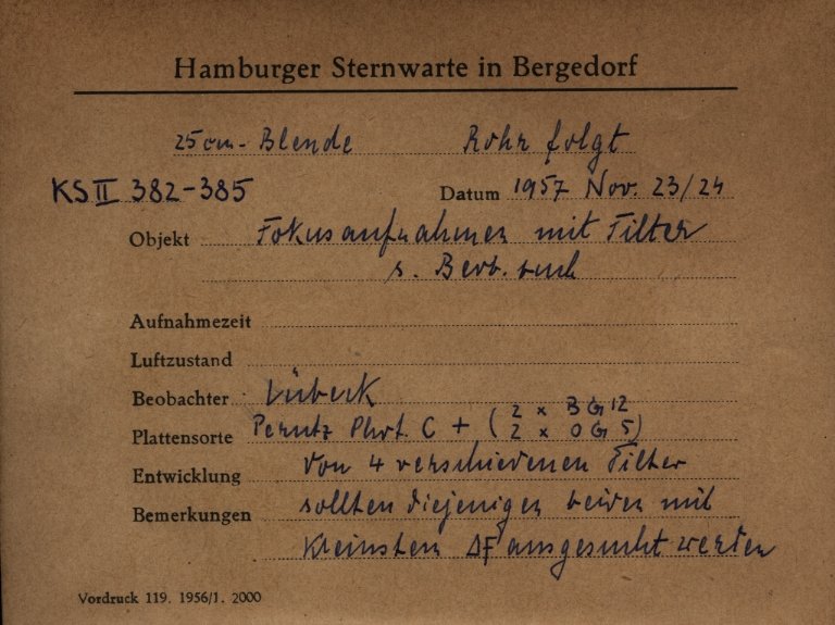 The material in this archive can be used for scientific purposes free of charge. Any other usage requires the written permission of the director of Hamburger Sternwarte.