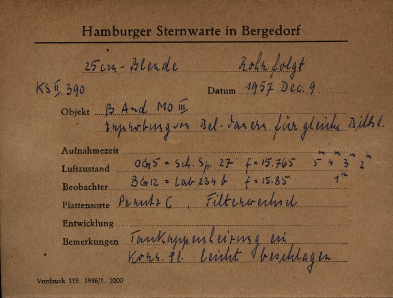 The material in this archive can be used for scientific purposes free of charge. Any other usage requires the written permission of the director of Hamburger Sternwarte.