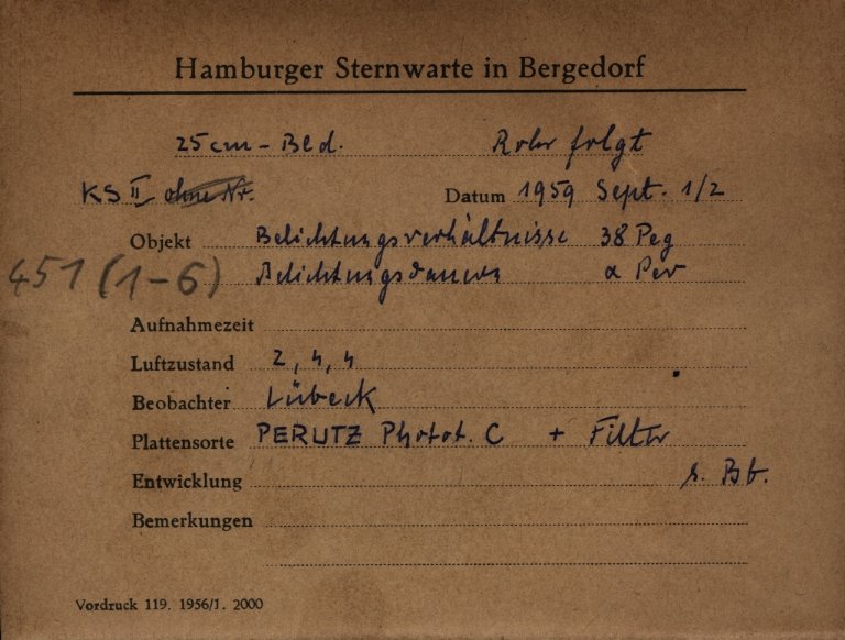 The material in this archive can be used for scientific purposes free of charge. Any other usage requires the written permission of the director of Hamburger Sternwarte.