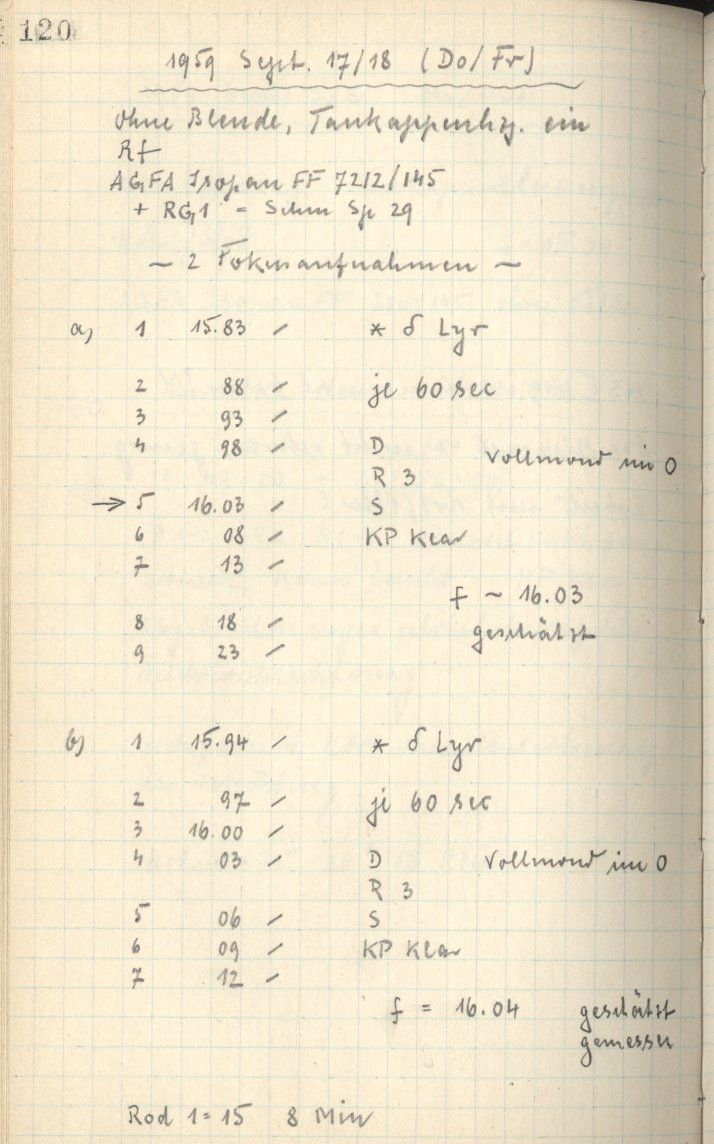 Zum Datum gehörende Seiten des Beobachtungsbuches