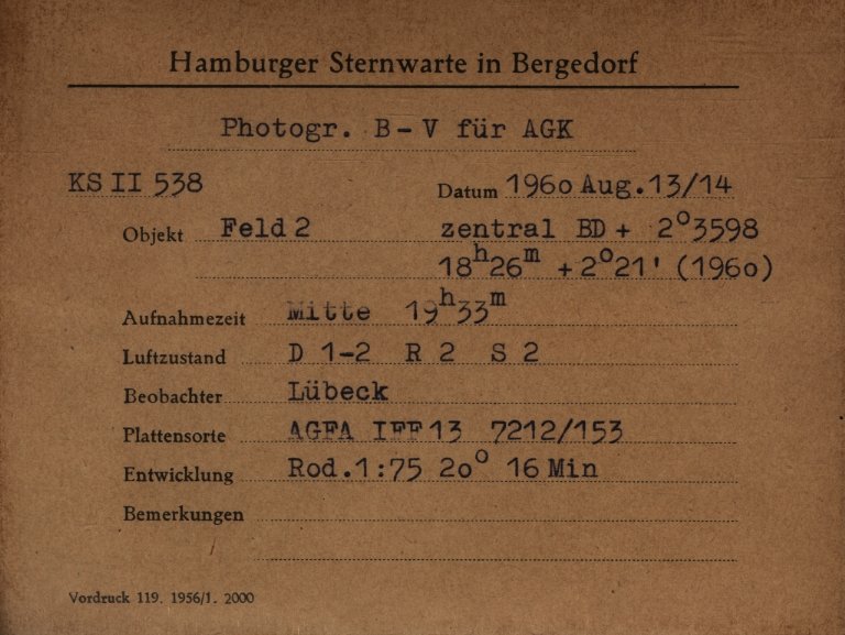 The material in this archive can be used for scientific purposes free of charge. Any other usage requires the written permission of the director of Hamburger Sternwarte.