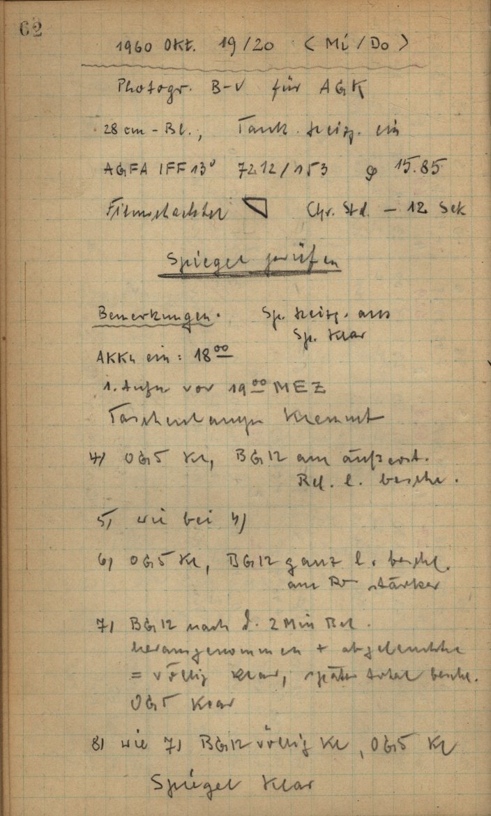 Zum Datum gehörende Seiten des Beobachtungsbuches