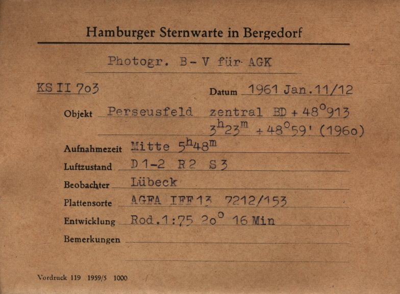 The material in this archive can be used for scientific purposes free of charge. Any other usage requires the written permission of the director of Hamburger Sternwarte.