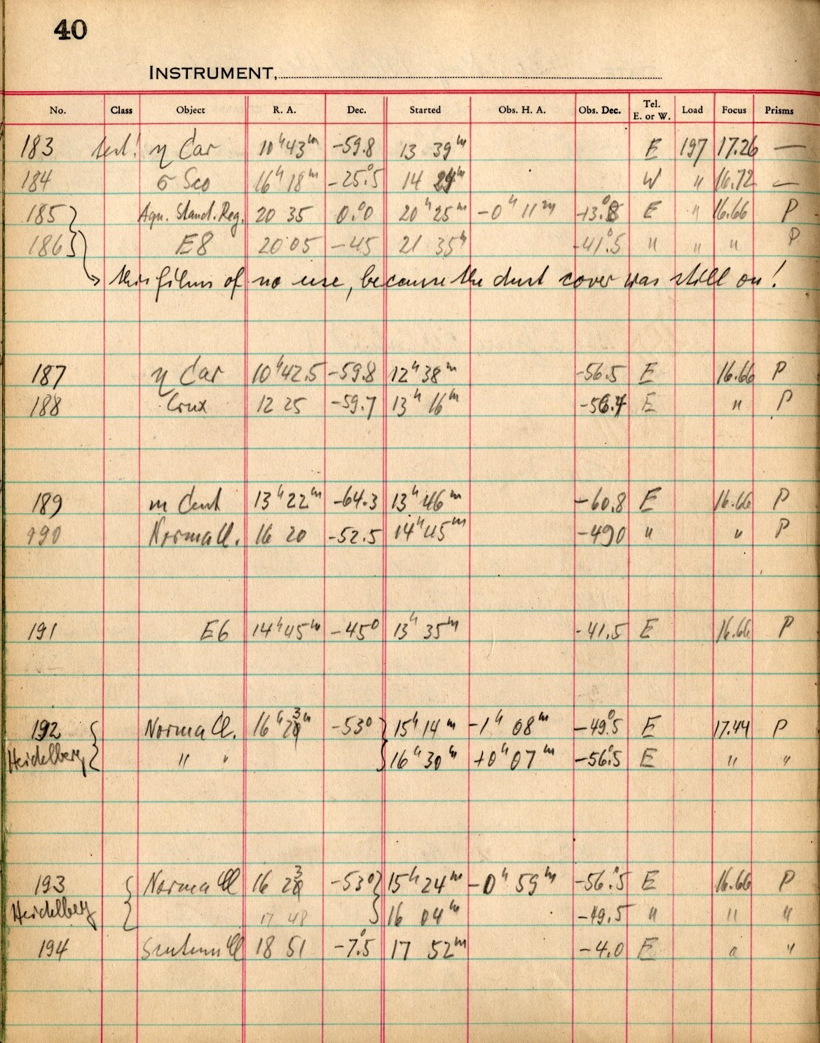 Norden = links, Osten = unten, falls nicht auf der Fotoplatte anders beschriftet