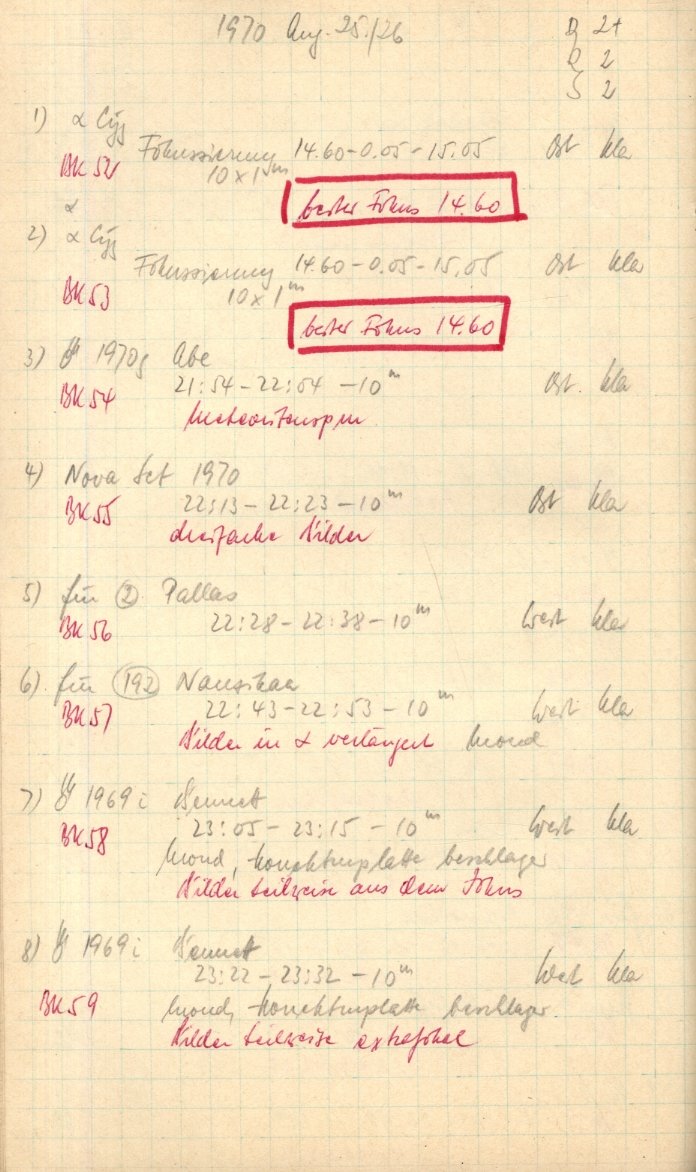 Zum Datum gehörende Seiten des Beobachtungsbuches