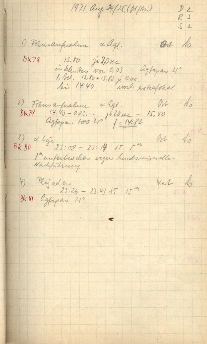 Zum Datum gehörende Seiten des Beobachtungsbuches