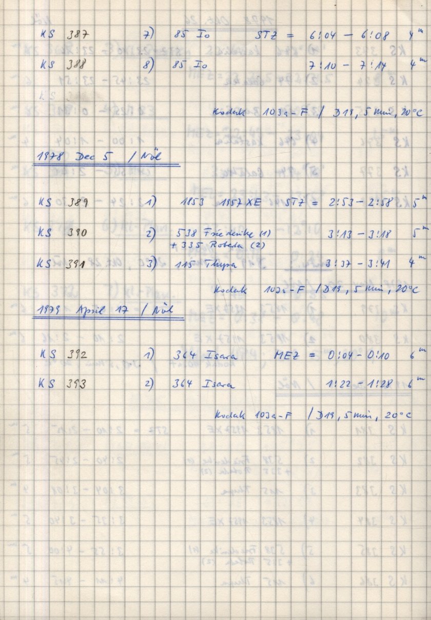 Zum Datum gehörende Seiten des Beobachtungsbuches