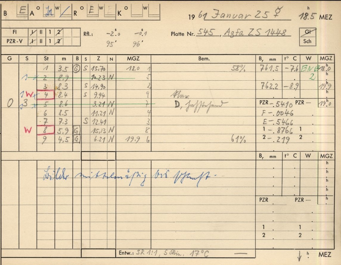 Norden = oben, Osten = links, falls nicht auf der Fotoplatte anders beschriftet