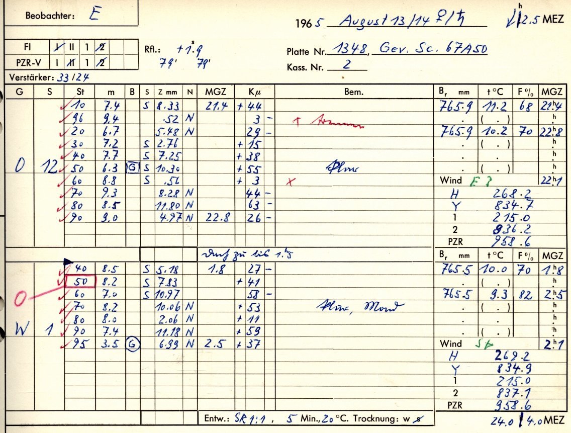 Norden = oben, Osten = links, falls nicht auf der Fotoplatte anders beschriftet