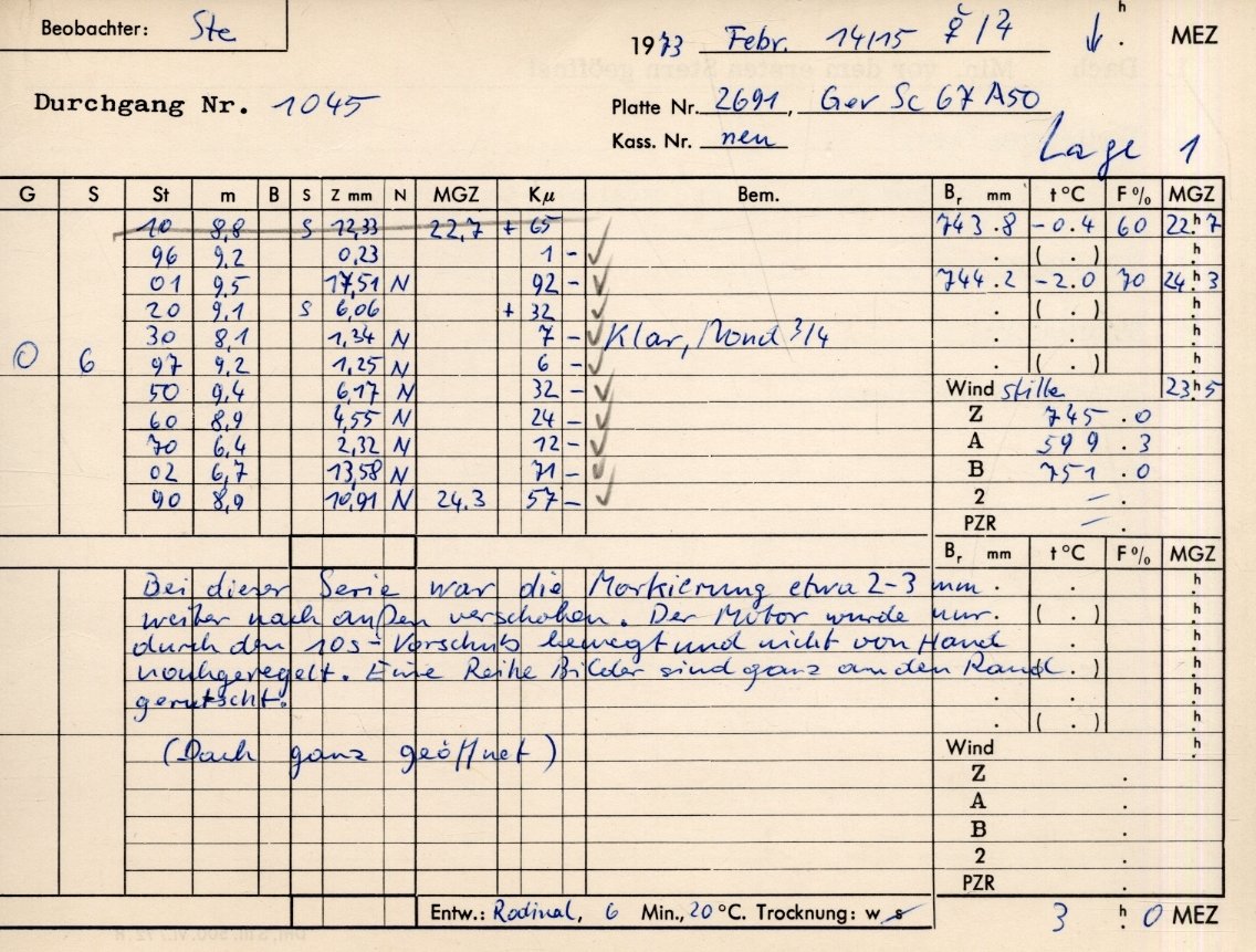 Norden = oben, Osten = links, falls nicht auf der Fotoplatte anders beschriftet