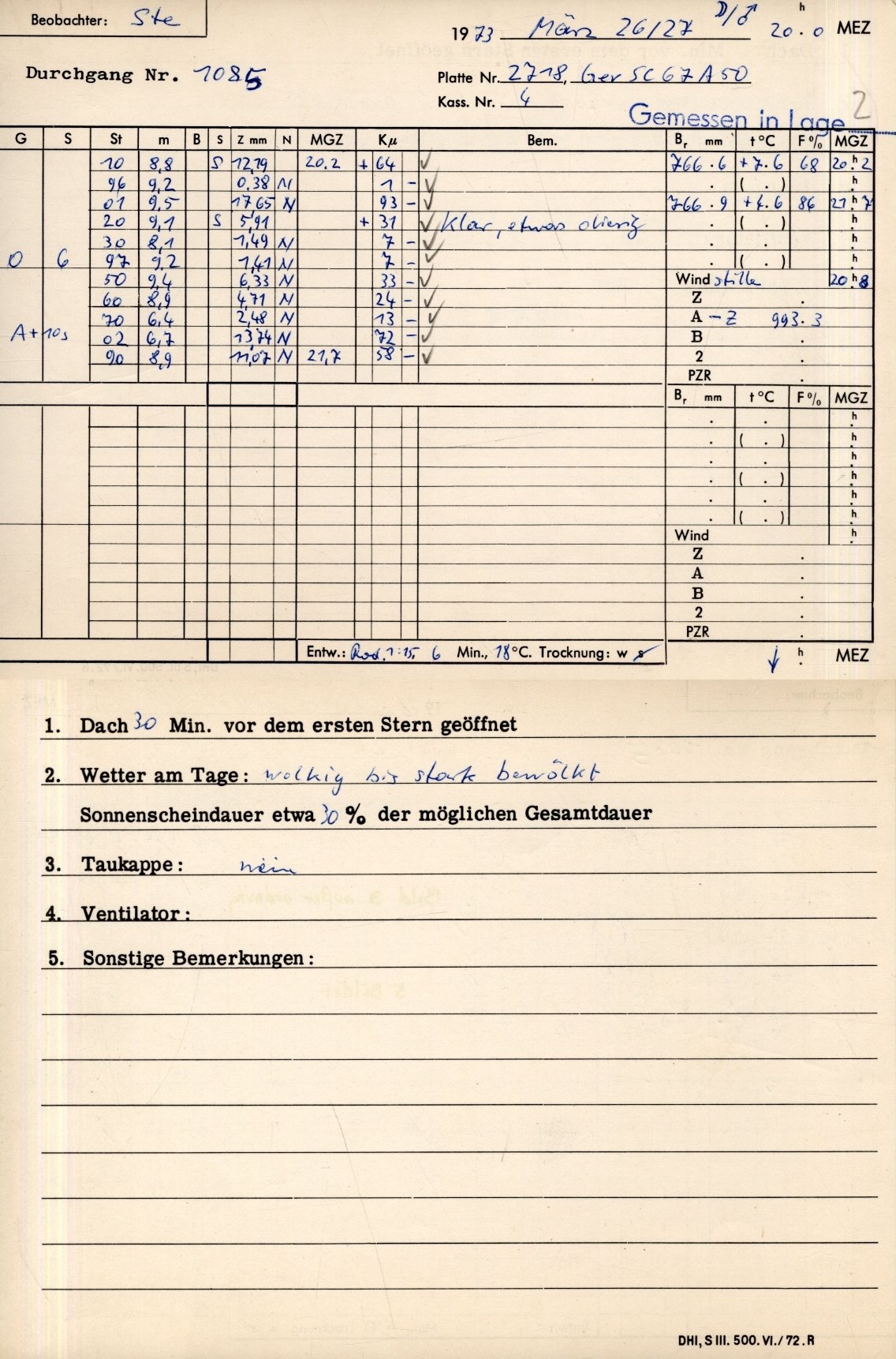 Photo-Zenit-Teleskop des DHI: PZT2718 -- --