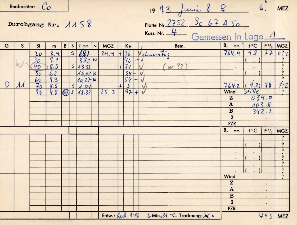 Photo-Zenit-Teleskop des DHI: PZT2752 -- --