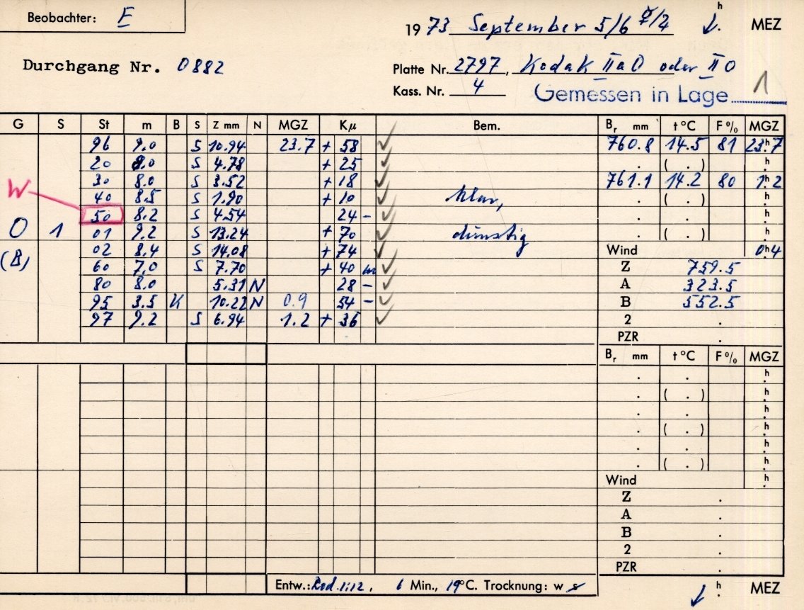 Norden = oben, Osten = links, falls nicht auf der Fotoplatte anders beschriftet