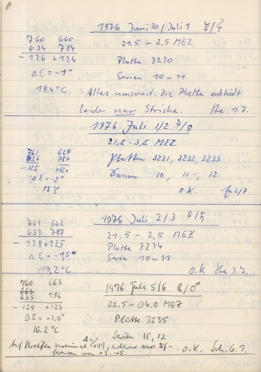 Norden = oben, Osten = links, falls nicht auf der Fotoplatte anders beschriftet