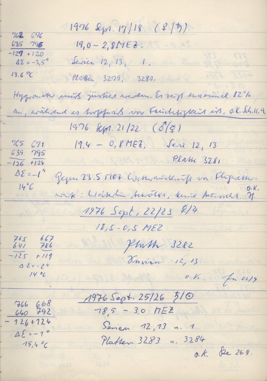 Norden = oben, Osten = links, falls nicht auf der Fotoplatte anders beschriftet