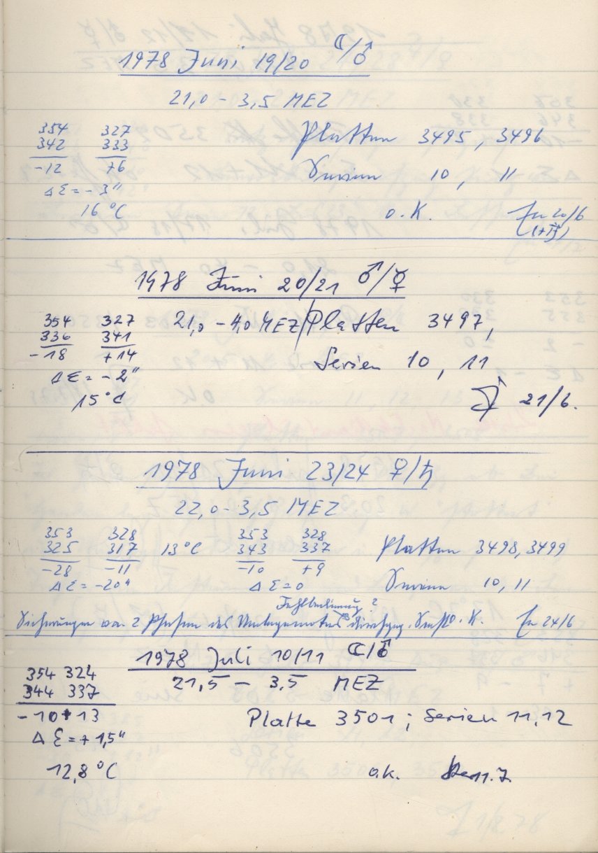Norden = oben, Osten = links, falls nicht auf der Fotoplatte anders beschriftet