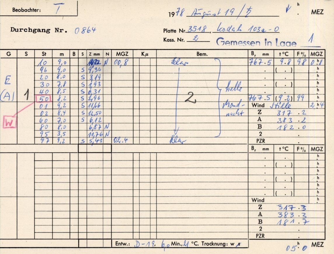 Norden = oben, Osten = links, falls nicht auf der Fotoplatte anders beschriftet