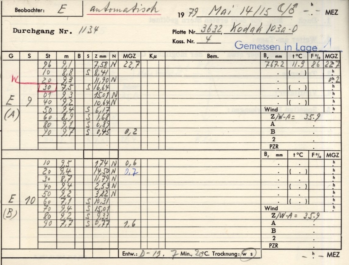 Norden = oben, Osten = links, falls nicht auf der Fotoplatte anders beschriftet