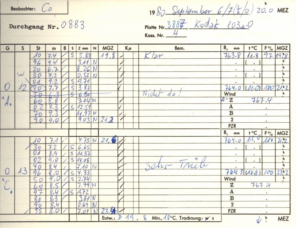 Norden = oben, Osten = links, falls nicht auf der Fotoplatte anders beschriftet