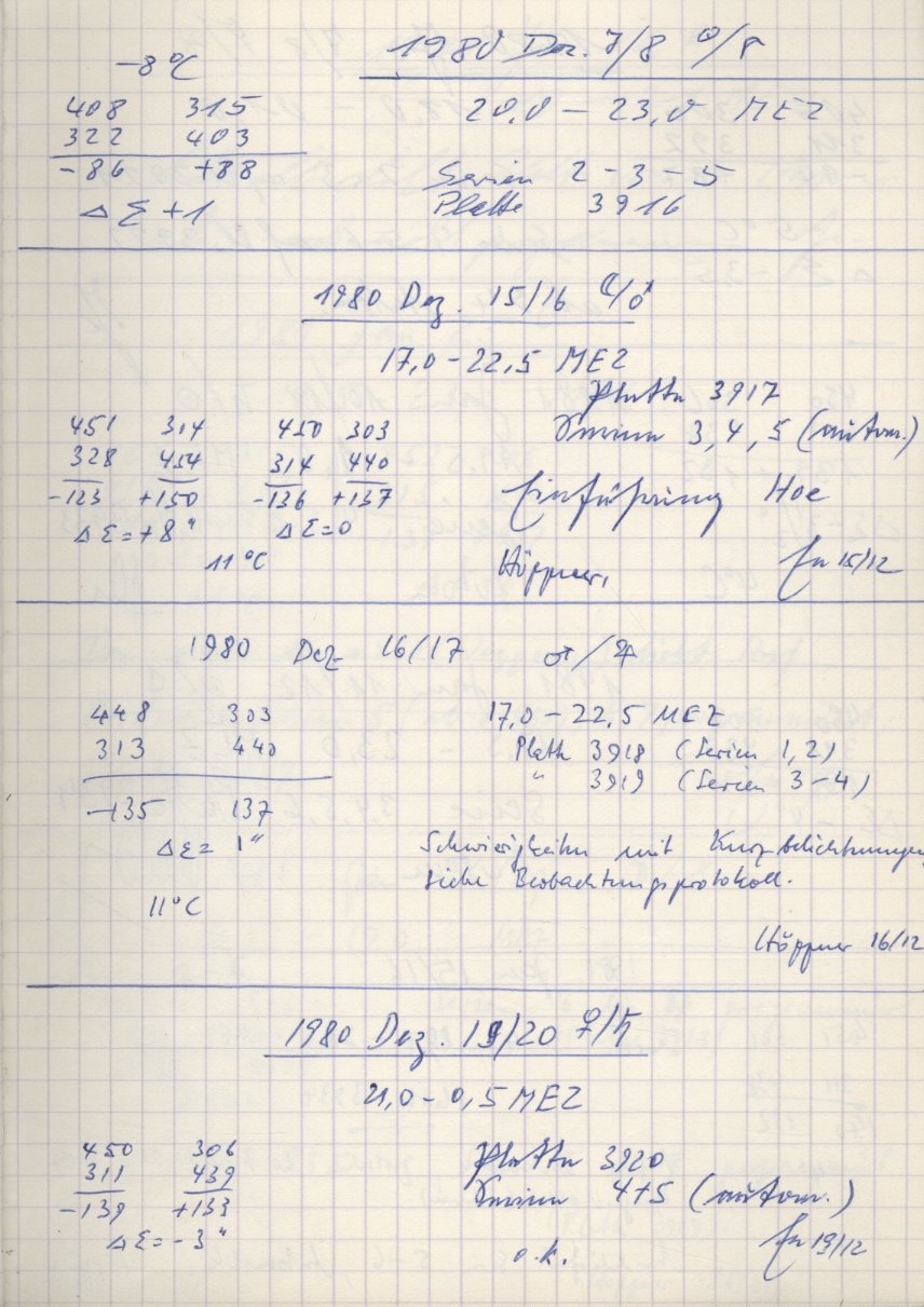 Norden = oben, Osten = links, falls nicht auf der Fotoplatte anders beschriftet