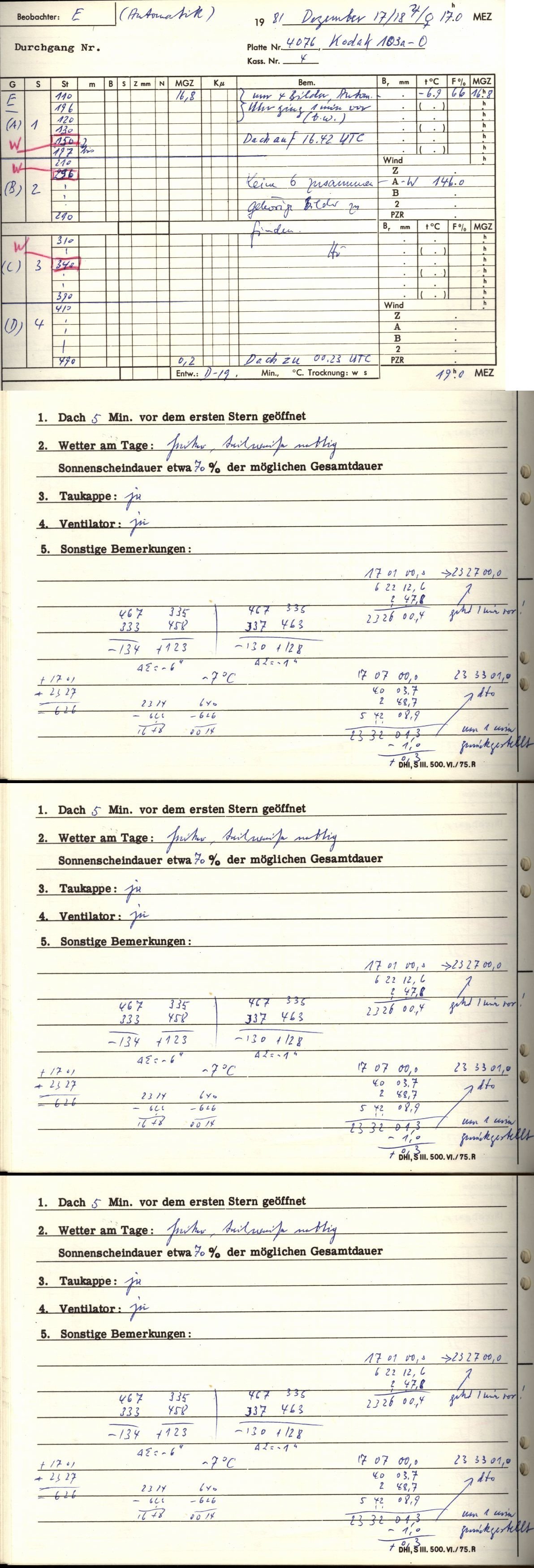Photo-Zenit-Teleskop des DHI: PZT4076 -- --