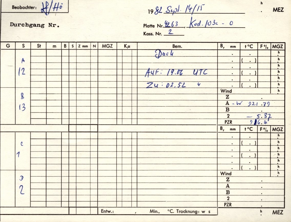 Norden = oben, Osten = links, falls nicht auf der Fotoplatte anders beschriftet