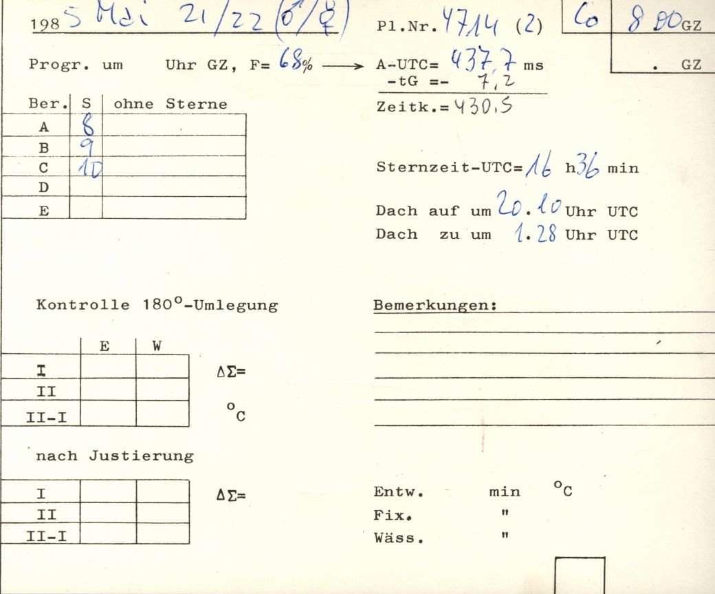 Photo-Zenit-Teleskop des DHI: PZT4714 -- --