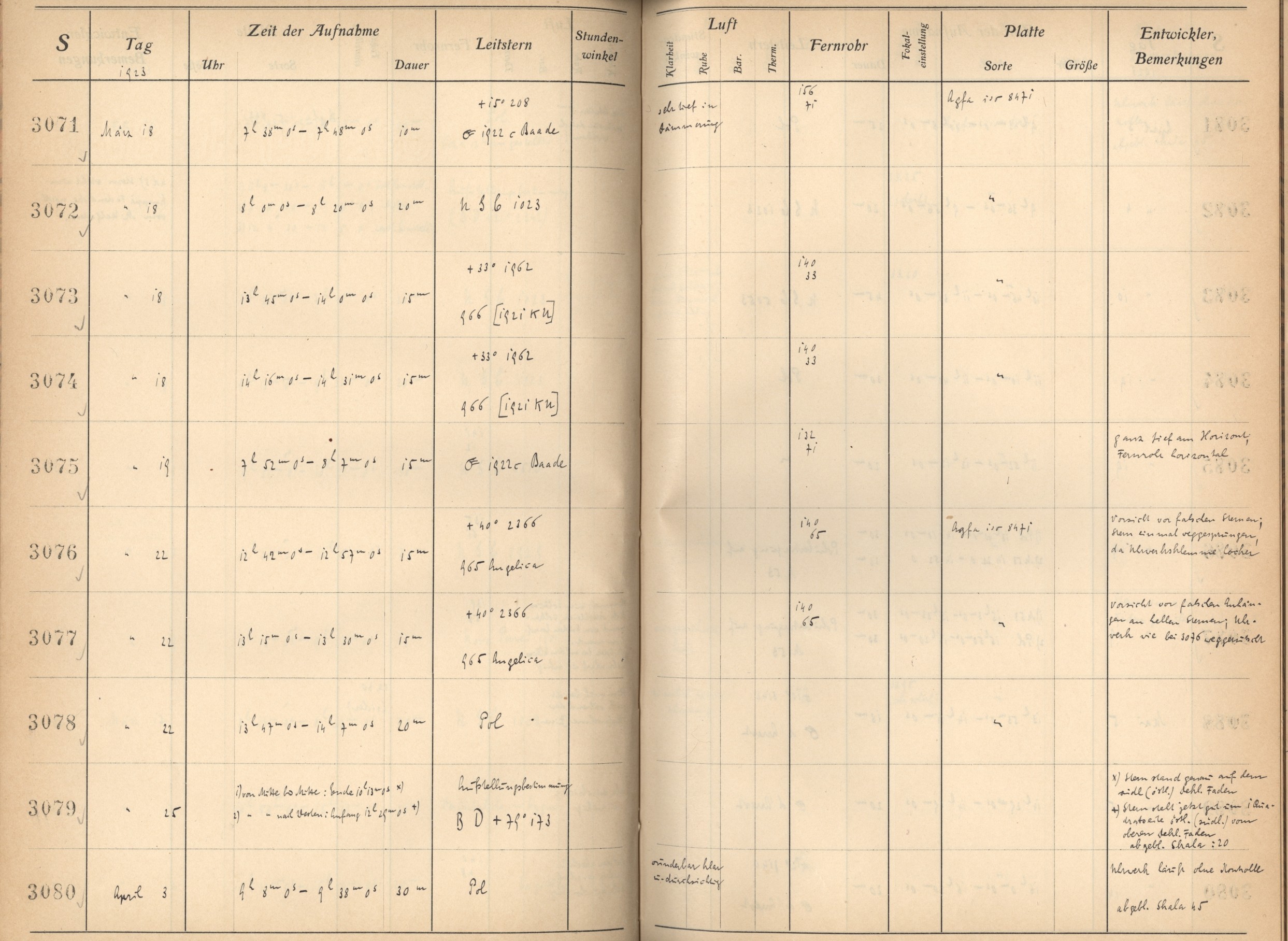Zum Datum gehörende Seiten des Beobachtungsbuches