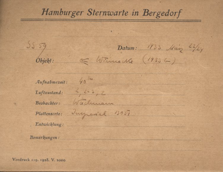 Original Schmidt-Spiegel: SS00059 -- Komet Winnecke (1933b) --