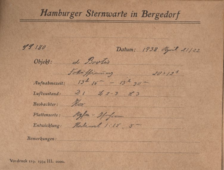 The material in this archive can be used for scientific purposes free of charge. Any other usage requires the written permission of the director of Hamburger Sternwarte.