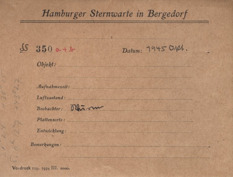 The material in this archive can be used for scientific purposes free of charge. Any other usage requires the written permission of the director of Hamburger Sternwarte.
