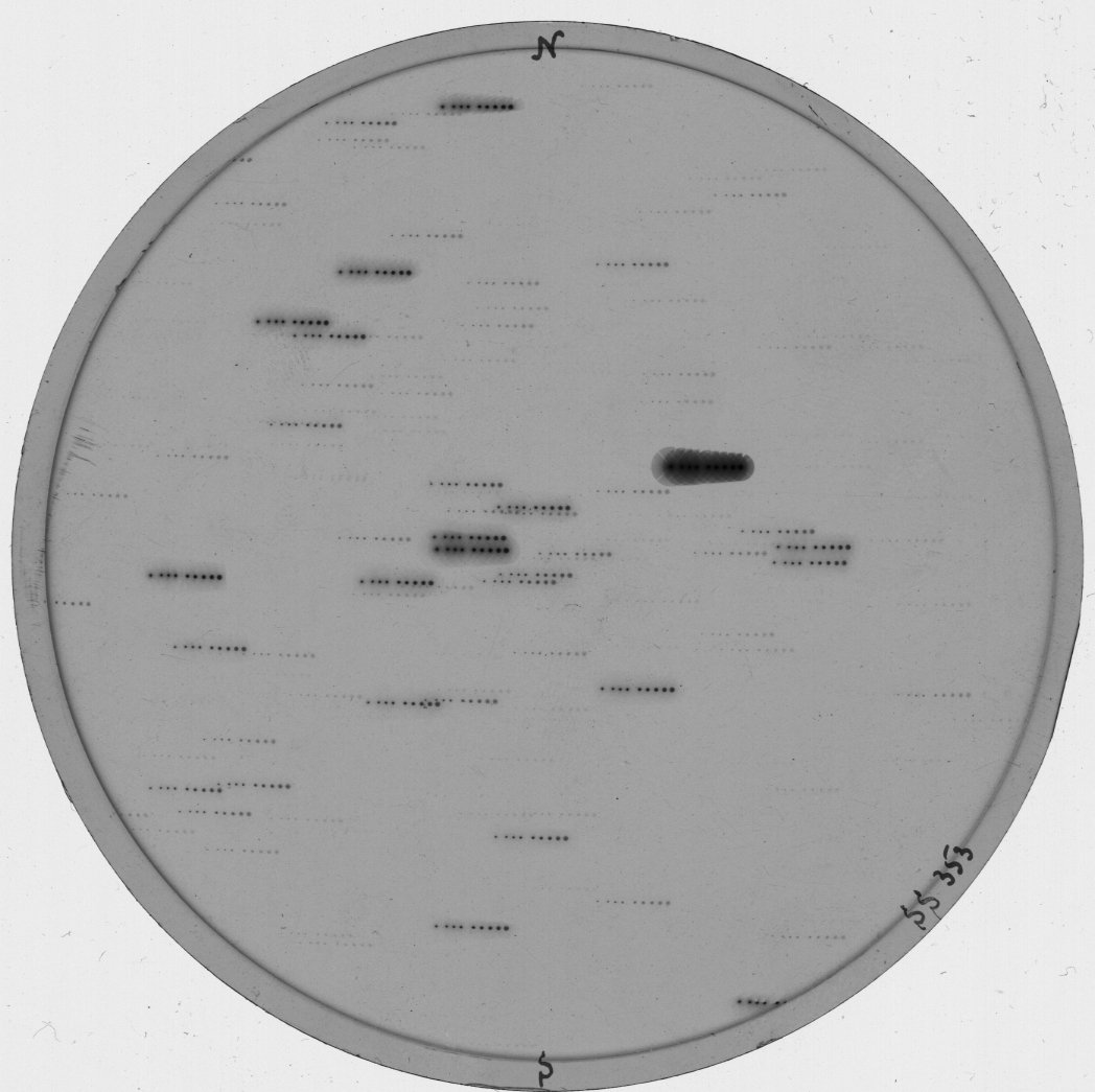 Norden = oben, Osten = links, falls nicht auf der Fotoplatte anders beschriftet