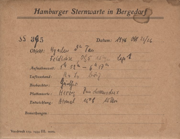 The material in this archive can be used for scientific purposes free of charge. Any other usage requires the written permission of the director of Hamburger Sternwarte.