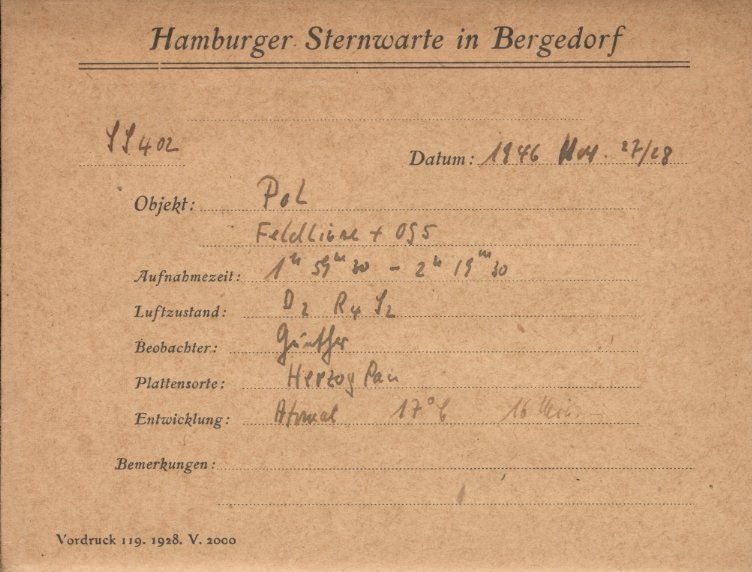 The material in this archive can be used for scientific purposes free of charge. Any other usage requires the written permission of the director of Hamburger Sternwarte.