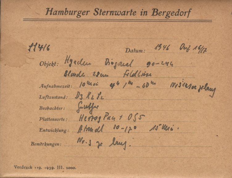 The material in this archive can be used for scientific purposes free of charge. Any other usage requires the written permission of the director of Hamburger Sternwarte.