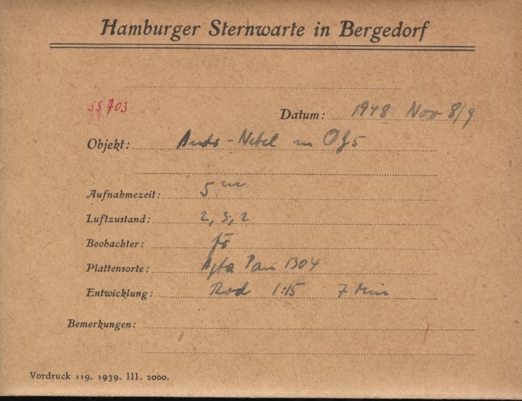 The material in this archive can be used for scientific purposes free of charge. Any other usage requires the written permission of the director of Hamburger Sternwarte.