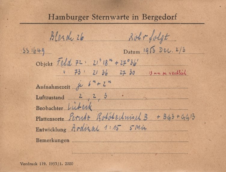 The material in this archive can be used for scientific purposes free of charge. Any other usage requires the written permission of the director of Hamburger Sternwarte.