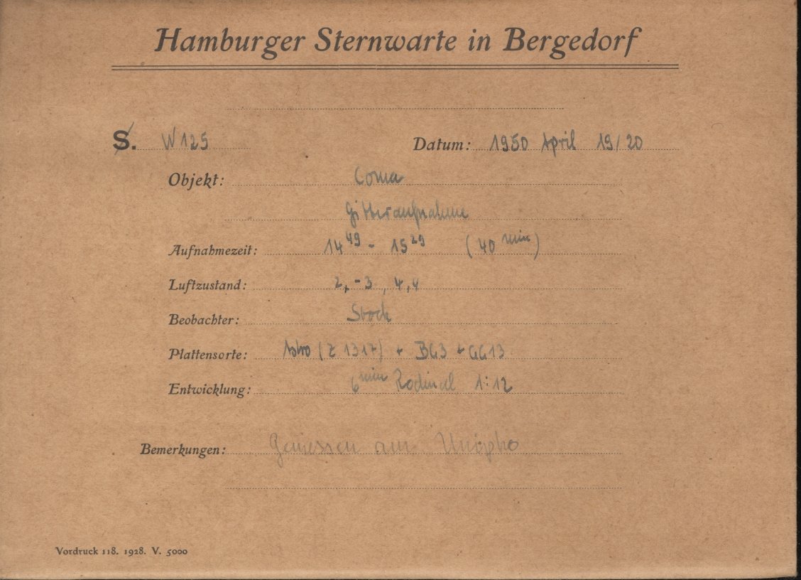 The material in this archive can be used for scientific purposes free of charge. Any other usage requires the written permission of the director of Hamburger Sternwarte.