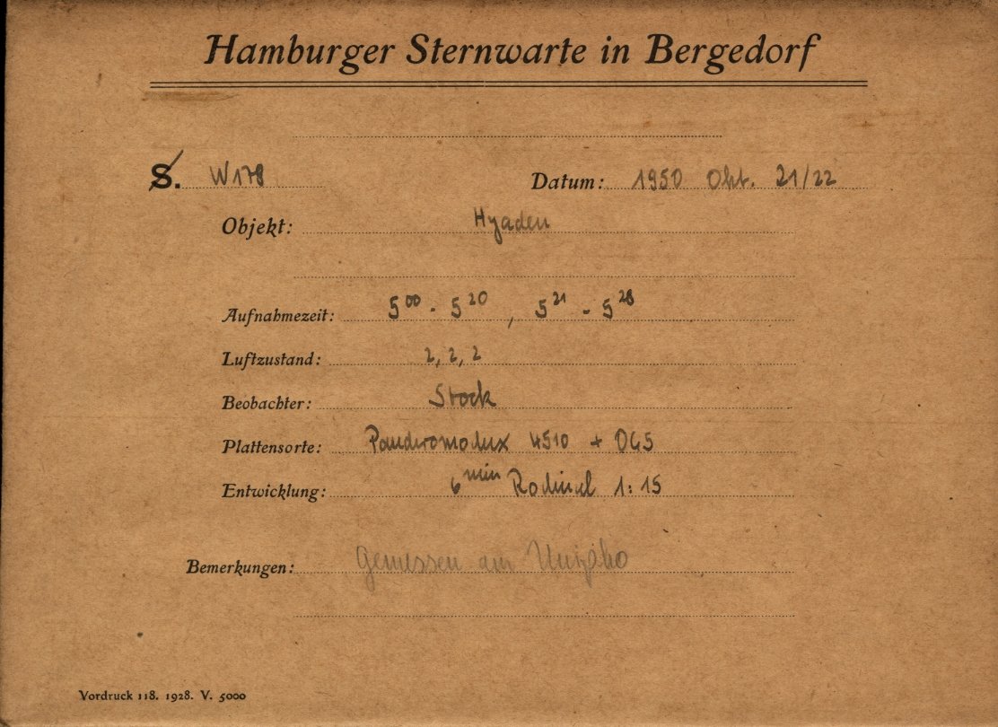 The material in this archive can be used for scientific purposes free of charge. Any other usage requires the written permission of the director of Hamburger Sternwarte.
