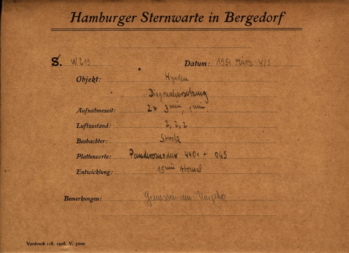 The material in this archive can be used for scientific purposes free of charge. Any other usage requires the written permission of the director of Hamburger Sternwarte.