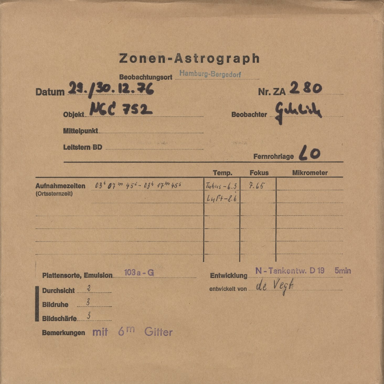 Norden = oben, Osten = links, falls nicht auf der Fotoplatte anders beschriftet